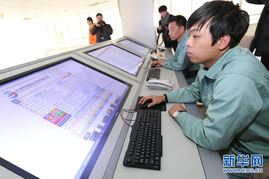 天津天钢联合特钢生产能源调度中心内,工作人员正在监控各种烟尘排放。(新华网 张博摄)