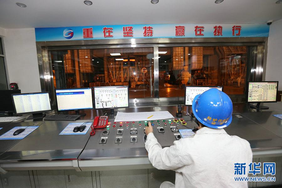 转炉主控室内只需要一个人操作就可以完成炼钢的全过程。(新华网 张博摄)