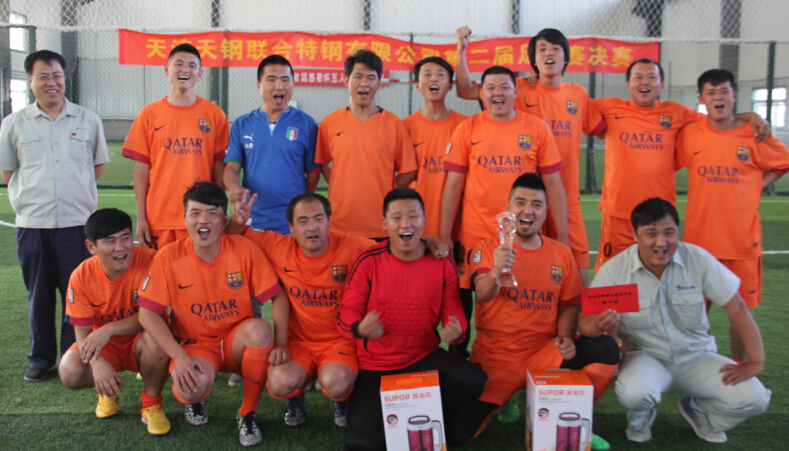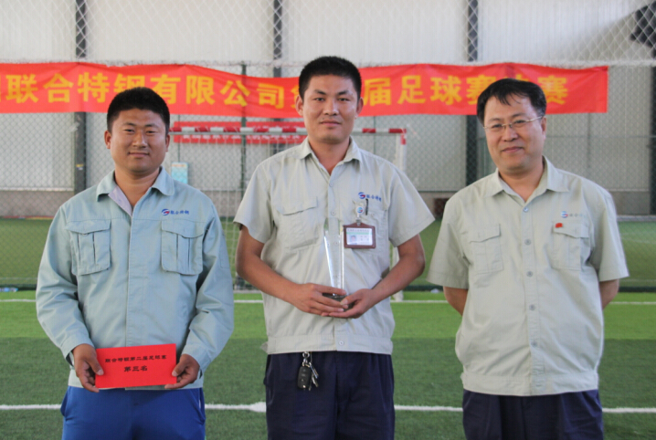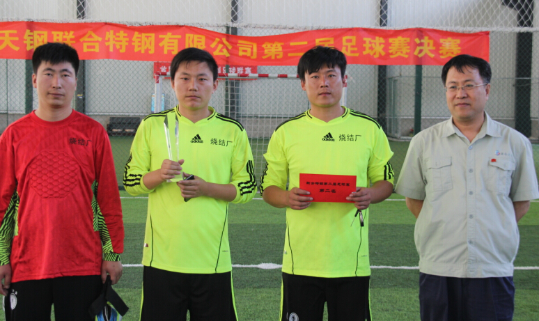 5月4日下午两点,随着主裁判的一声哨响,联合特钢第二届足球赛决赛于室内足球场正式开始。经过90分钟的激烈比赛,最终双方比分战成1:1平,通过点球决战,炼铁厂以总比分5:4战胜烧结厂,获得本届赛事冠军,烧结厂获得亚军。至此,为期一个月的足球赛圆满落下帷幕。