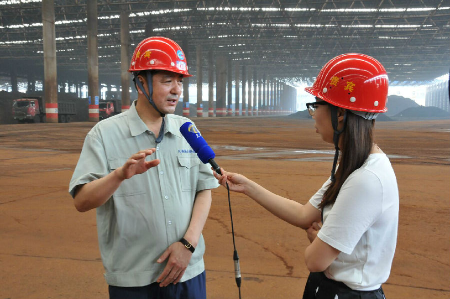 随后,在公司领导的陪同下,各位来宾乘车沿环路参观了联合特钢公司厂区全貌,总经理兰术雨结合烧结、炼铁、炼钢工艺对公司环保治理工作进行了详细的描述,并在环保原料大棚接受了天津电视台记者的现场采访。媒体记者对联合特钢公司环保无组织排放治理措施取得的成效重点进行了采访,并给予高度评价。
